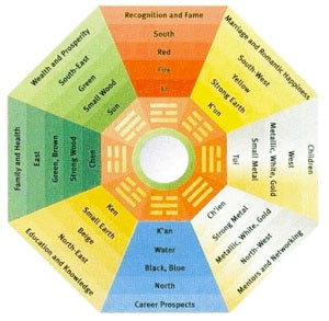 The Feng Shui master helps people take out from the environment those things that deplete energy around those key dimensions, and bring into the environment those things that create positive energy around those dimensions. The same items in the Bagua, interestingly line up with important areas for business success.